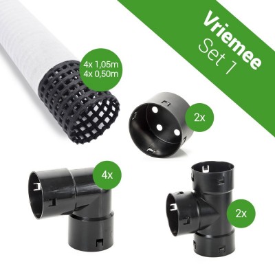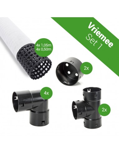 Met deze boombeluchtingsset van Vriemee koop je alles wat je nodig hebt in 1 keer, voor een scherpe prijs. Deze set bestaat uit geperforeerde beluchtings-/bewateringsbuis (4x 1,05 meter en 4x 0,50 meter) met filterkous, waardoor er geen vuil in de buis kan komen. De kortere buizen worden verticaal geplaatst in combinatie met de afsluitkappen voor een goede luchtcirculatie. Door de kappen kan tevens vloeibare voeding worden toegediend, die via het systeem de juiste plek bereikt. Bij de set worden 2 T-stukken en 4 bochten geleverd voor een solide onderlinge verankering van de beluchtingsbuizen.