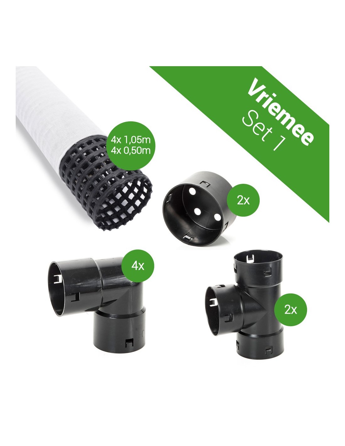 - 4x 1,05 meter en 4x 0,50 meter beluchtingsbuis