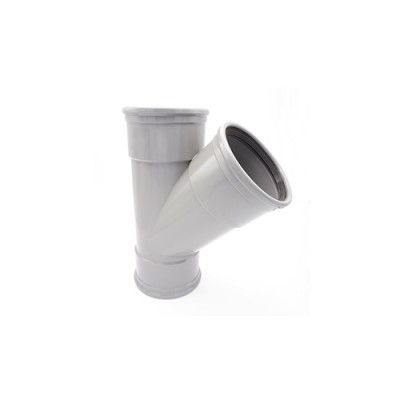 Met dit T-stuk in een hoek van 45 graden leg je eenvoudig een aftakking aan in je buitenriolering. Zo laat je het (vuilwater) gemakkelijk afbuigen in een andere richting! Het T-stuk is voorzien van 3 praktische verbindingsmoffen, waardoor je hulpstuk altijd goed aansluit op je rioleringsbuis.