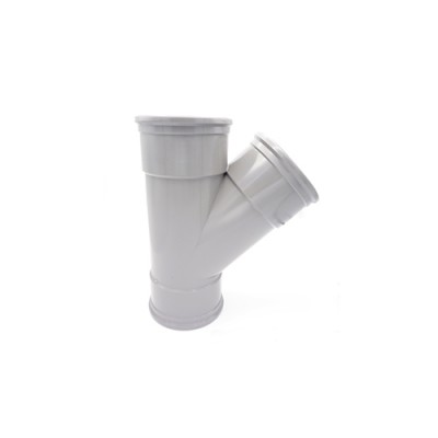 Met dit T-stuk in een hoek van 45 graden leg je eenvoudig een aftakking aan in je buitenriolering. Zo laat je het (vuilwater) gemakkelijk afbuigen in een andere richting! Het T-stuk is voorzien van 3 praktische verbindingsmoffen, waardoor je hulpstuk altijd goed aansluit op je rioleringsbuis.