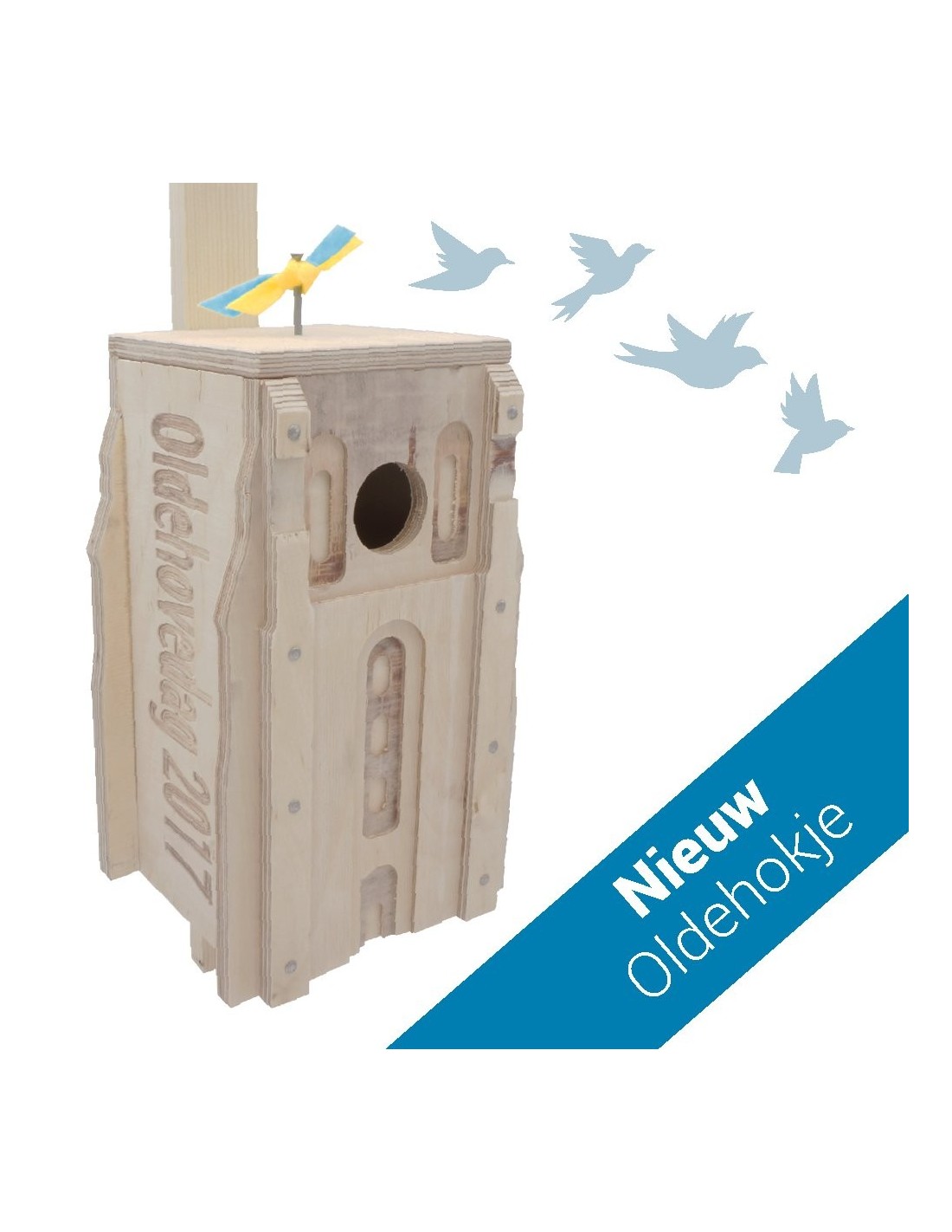 Een uniek, handgemaakt item, dat je waar je ook bent even terug laat denken aan de mooiste toren van Leeuwarden? Bestel deze unieke houten versie van de Oldehove bij Vriemee! Met ons Oldehokje geef je de vogels in je tuin een prachtig verblijf. Of gebruik hem als leuke decoratie binnenshuis!