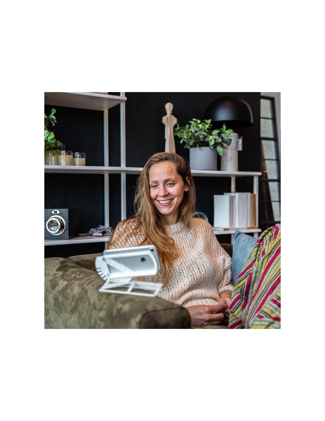 Videobellen met een goede vriendin, de nieuwste Netflix serie checken terwijl je al in bed ligt, of de perfecte TikTok video opnemen: het zijn allemaal dingen die een stuk makkelijker gaan als je je telefoon niet in je hand hoeft te houden. Tilty geeft je jouw bewegingsvrijheid terug! Klik de twee delen in elkaar in de stand die bij je past, en doe wat jij het liefste doet.